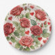 Rote Rosen mit Valentinherzen Muster Romantische Pappteller