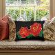 Zwei rote Rosen in schwarzem Hintergrund, alle in einem traditionellen Tätowierstil gezeichnet