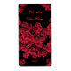 Einfache Anpassung des Textes auf diesem schönen Weinflaschenlabel aus der Rose, das mit einem sich wiederholenden abstrakten Muster von rote Rosen auf einem reinen schwarzen Hintergrund dekoriert ist.