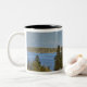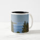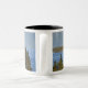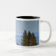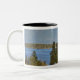 Rote Scheune sitzt entlang landschaftlichem Zweifarbige Tasse