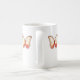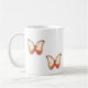zwei rote Schmetterlinge auf jeder Seite einer klassischen Tasse.