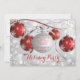 Moderne Rote Ornamente mit Schneeflocken und trendiger Silver Bokeh Winterurlaub Einladung. Umdreh unsere elegante Einladung, um einen passenden Rücken für eine besondere zusätzliche Touch zu sehen. Stilvolle und schicke Weihnachten Party Einladung oder festliches Office-Party, Party, formales Cocktail-Party, Abendessen oder jeden Winter kommen zusammen.