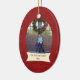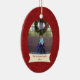 Diese ovalgeschnittene Weihnachtsfeiertags-Keramikverzierung hat einen Rot farbigen Hintergrund mit Losen roten Schneeflocken ganz herum im Hintergrund. In der Mitte können Sie die Familienphotographie mit Ihren Selbst besonders anfertigen. Unter dem Foto gibt es eine Creme und eine weiße Fahne, in der Sie den Familiennamen und das Jahr personifizieren können. Sie konnten den Text für das erste Weihnachten eines Babys oder sogar ein unser erstes Weihnachten für ein eben verheiratetes Paar besonders anfertigen!
