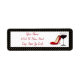 Dieses sassy Label Design hat einen schwarzen Hintergrund mit goldfarbenen Herzen. In der weißen Kiste befindet sich ein Bild von roten, hoch geheilten Schuhen und ein Glas Rotwein. Sie können dieses Label mit Ihren Informationen anpassen.