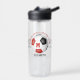 Diese Mannschaft farbenfroh zum Thema Fußball ist für Mädchen oder Jungen geeignet und zeigt das realistische Bild eines roten, schwarz-weißen Fußball, auf dem Sie das Monogramm oder den Buchstaben des Athleten personalisieren können - die Schule oder den Clubnamen, der den Fußball umrundet, den Namen des Athleten und die Trikotnummer auf den Flaschenseiten - von katz_d_zynes