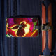 mit originellen Kunstwerken aus Aquarellmalerei von Sacha Grossel aus lila, indigofarbenen, krummroten und gelben Blume gegen grünes Blattwerk. Dieses nahe, farbenprächtige und leuchtend blumengeschmückte botanische Design mit verschiedenen Farbtönen verleiht diesem coolen Wetter, der häufig vorkommenden Blume, ein lebendiges Gefühl.Dieses Gepäckanhänger kann so angepasst werden, dass es Ihre persönlichen Daten auf der Rückseite enthält.