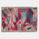 Das Design der roten Bänder mit dunklen Tönen auf grauem, bläulichem Hintergrund und einem Effekt, der feinen Regen simuliert.