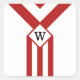 Rote Streifen und Chevronen mit Monogramm auf Weiß Quadratischer Aufkleber