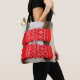 Ein Paar rote Strickhandschuhe mit nordischem Muster auf einem schneebedeckten Baumstamm. Die Handschuhe werden während einer Pause vom Langlaufen als Sitzpolster verwendet.