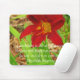 Nahes Foto einer roten Taglilie wird als Hintergrund auf diesem Mousepad verwendet. Das Zitat lautet: Gartenarbeit ist die Kunst, die Blume und Pflanze als Farbe verwendet, und Erde und Himmel als Leinwand.