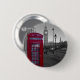Rote Telefonzelle, schauende Schwarzweiss-Brücke Big Ben Londons und die Häuser des Parlaments durch das Parlament quadrieren