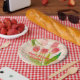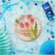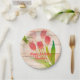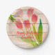 Rote Tulips im Hintergrund für sauberes Holz Pappteller