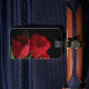 Stellen Sie Ihr Gepäck her, heraus zu stehen auf einem Flughafenkarussell mit einzigartigen Umbauentwürfen! Ein Blumenstrauß der roten Tulpen und des Grüns des Scarlet verlässt Anmut diesen herrlichen Gepäckumbau. Aller Text kann besonders angefertigt werden. Die Rückseite hat Ihre ganze persönliche Information und mehr Tulpen.