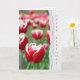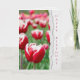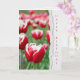 nahe rote Tulpen im Frühjahrsgarten mit abgerundeter Randwirkung zum Geburtstag