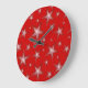 Modernes Design mit "leuchtenden" roten und weißen Sternen auf rotem Hintergrund. Wall Uhr mit individualisierbarem Design für Sie, um mit Ihrem eigenen Text, Bildern und Ideen zu personalisieren. Bitte beachten Sie, dass es sich um ein gedrucktes Bild handelt, das mit Originalfotos und Digitaltechnik erstellt wurde, es nicht glänzt oder echte Glitzern enthält.
