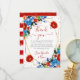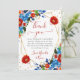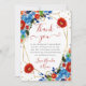 Elegantes Boho Wasserfarbe Rot und Blauer Sommer Frühling Blumen und Blattdesign mit goldgeometrischem Rahmen