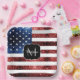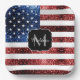 Personalisieren Sie Imitate funkeln mädchenhafte Geburtstags-Dinner Party Platte mit Ihrem Initial und Namen. Funkelnd US-Flagge in rot-blau Imitat Glitzern Glitzer 4. Juli Party liefert. Wir verwenden Foto von Glitzern und nicht von tatsächlichen Glitzer.