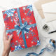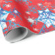 Rote und blaue Schneeflocken und Sterne Geschenkpapier