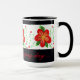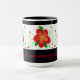 Die schwarze Tasse mit roter Blüte. Der Text kann auf Ihre eigene inspirierende Nachricht personalisiert werden, oder der Text ist abnehmbar. Schöne personalisierte Geschenkidee.