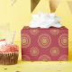 Gold Kreise und Punktmuster auf einem roten Hintergrund.