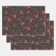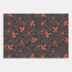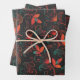 Rote und grüne Abstrakte Blüte im Schwarzen Hinter Geschenkpapier Set