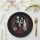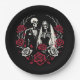 Rote und Schwarz-weiße Rose Skeleton Couple Weddin Pappteller