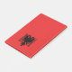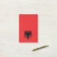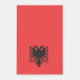 Der silhouettierte doppelte vorangegangene Adler von Albaniens Wappen über einem roten Hintergrund.