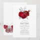 Chic Vintage rot gefärbte Rose Taufe Einladung mit Akzenten von Silberfolie.