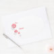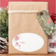 Ovaler weißer Hintergrund mit roten und silbergrauen Schneeflocken, zusammen mit dem Text von To: und From: bilden Sie ein hübsches Geschenketikett in Aufkleber-Form, das mit vielen Geschenkpackungen koordiniert wird.
