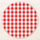 Rote und weiße Gingham Karierte Karos Rustikale Ho Runder Pappuntersetzer