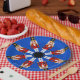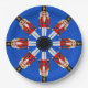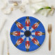 Gold und rote Nussknacker in einem Kreis auf blauem Hintergrund. Sie können die Hintergrundfarbe gerne ändern.