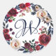 Rote und weiße Rose Blumenkranz Mit Monogramm Runder Aufkleber