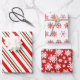 Rote und weiße Schneeflocken und gestreifte Ferien Geschenkpapier Set