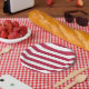 Rote und weiße Streifen Pappteller