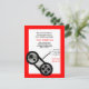 Eine Spaßeinladung für irgendein Videospiel-Party. Es kennzeichnet eine helle rote Grenze. Ein Schwarzes und silberner ein Videospielprüfer sitzen auf der Unterseite, während die Spitze zu Ihrer Partyinformation ist. Erhalten Sie Ihr Spiel an mit dieser Einladung!
