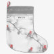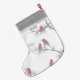 Red Birds Gray Branches Muster Monogram Grosser Weihnachtsweihnachtsmuster Weihnachtsweihnachtsbaum Strumpf mit festlichen Weihnachtsmustern aus Roten Vögeln auf grauen Ästen auf einem weißen Hintergrund gepaart mit schicker schwarzer Typografie für Ihren individuelle Name. Enthält das gleiche Design auf beiden Seiten des Strumpfs.