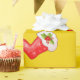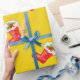 Rote Weihnachts-Strümpfe in Gelb Geschenkpapier