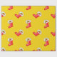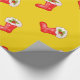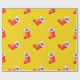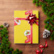 Ein buntes Weihnachtspapier mit einem festlichen Muster von Strumpfs Weihnachtsfeiern, verstreut auf einem goldgelben Hintergrund.