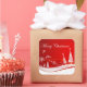 Der Weihnachtsaufkleber ist mit einem festlichen Urlaubskulptur und Schneeszene bedruckt. Großer Aufkleber gezeigt. Passen Sie dieses Objekt an oder kaufen Sie, wie es ist.