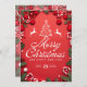 Rote Weihnachtskarte mit Baum + Rentierfest Einladung