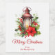 Rote Weihnachtslattern Poinsettia und Kiefer Weinetikett