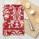 Rote, weiße Monogramm-Wirbel Geschirrtuch
