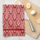 Rote, weiße Monogramm-Wirbel Geschirrtuch