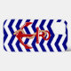Dieses vibrierende nautische Design zeichnet sich durch einen roten Anker auf einem Zickzack Streifenmuster in Marineblau und Weiß aus.