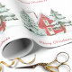 Roter Barn Grüner Winterwald Pine Weihnachtsbaum Geschenkpapier