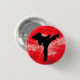 Kampfkunstfrau auf einem roten stürmischen Hintergrund pinback Knopf.