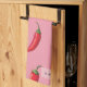 Roter Chili Pepper-Muster auf rosa Hintergrund Geschirrtuch