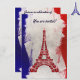 Bling red Eiffelturm über satin tricolor Hintergrund Anpassbarer Text. Tag der Bastille oder thematische Party.