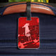 Roter elektrischer Bass-Gitarren-Monogramm-Gepäckanhänger. Eine rote und schwarze elektrische Bass-Gitarre und Ihr Namen- und Initialen- oder Gewohnheitstext. Ein großes Geschenk für Ihren Lieblingsbass-Spieler, Musiker oder Musikfreund.