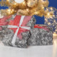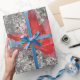Roter Fall in Regen auf grauer, strukturierter Str Geschenkpapier